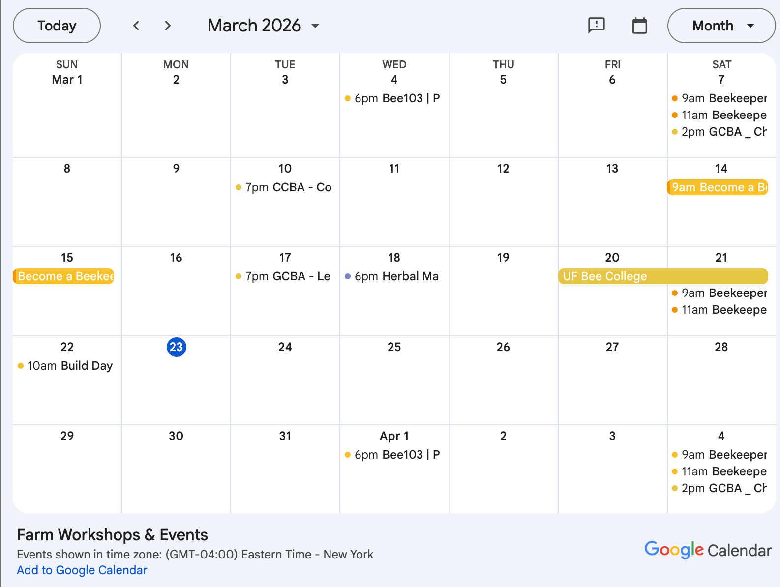 This 2-day beginner beekeeping course in Cape Coral, Florida teaches you how to start, manage, and inspect honey bee colonies β with real, hands-on hive experience.